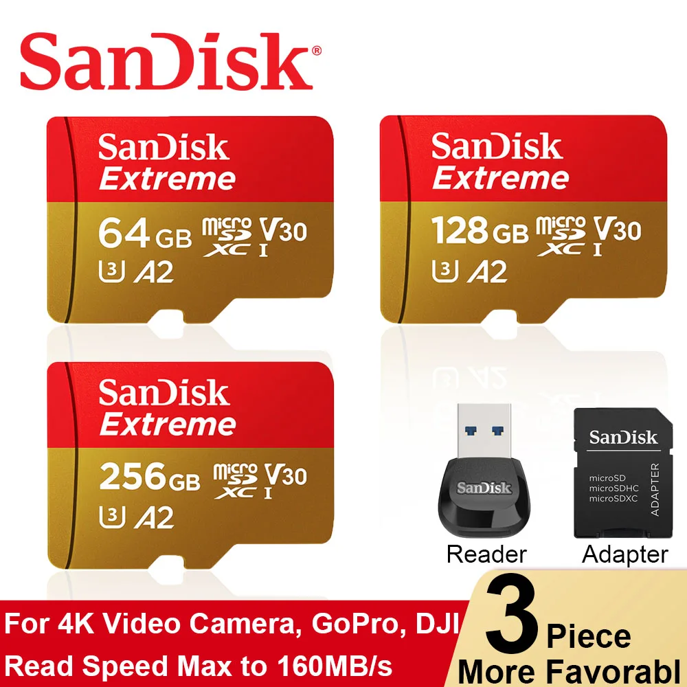 SanDisk Оригинальная карта памяти 128 ГБ, A2 U3 Extreme microSDXC, флэш-карта памяти 256 ГБ, 512 ГБ, USB, TF-карта 4K для камеры, дрона