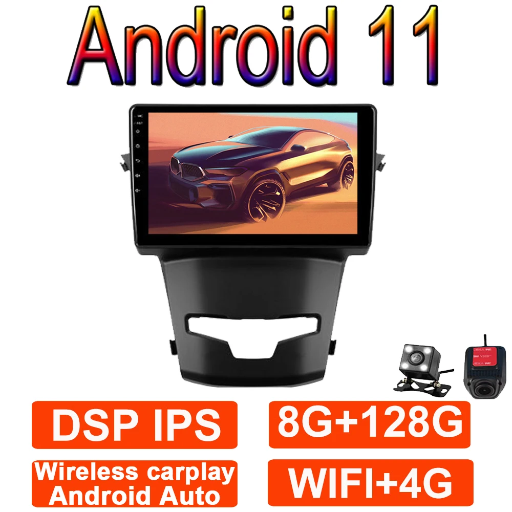 Автомагнитола 9 дюймов IPS для SsangYong Korando Actyon 2013 - 2017 BT WIFI Android 11 Автомобильный мультимедийный видеоплеер навигация GPS Carplay