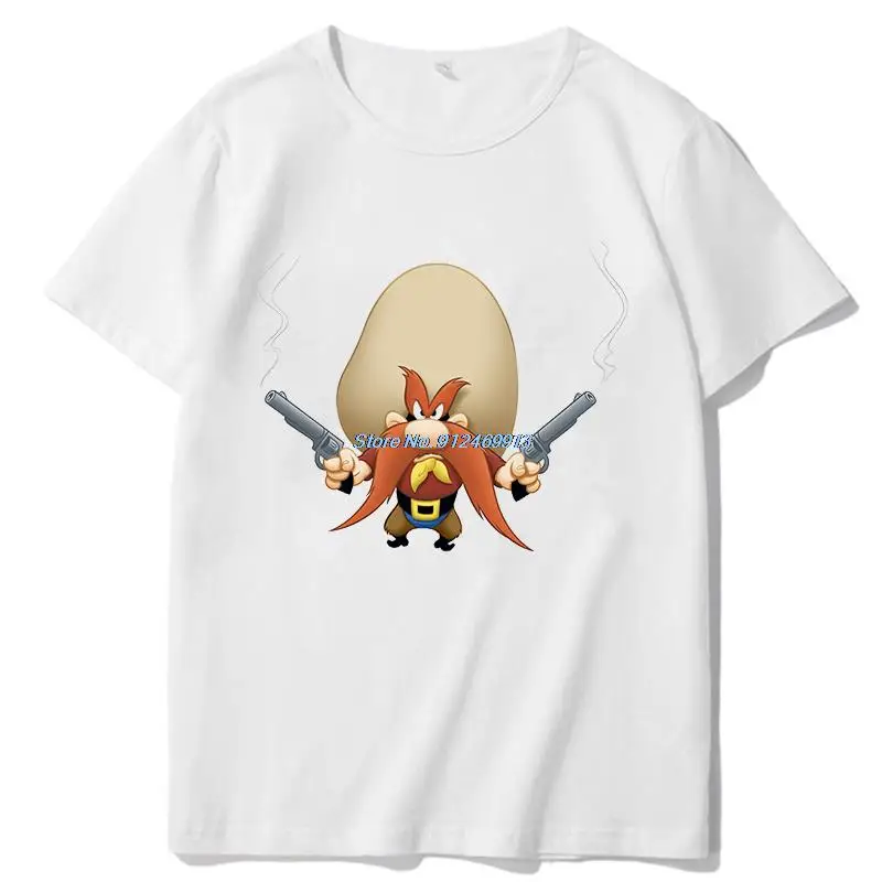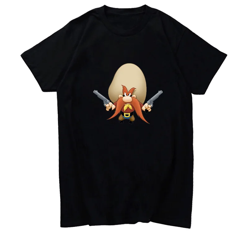 Футболка Yosemite Sam с рисунком пистолета, футболки оверсайз, футболки с коротким рукавом, уличная одежда унисекс в стиле Харадзюку, черно-белая
