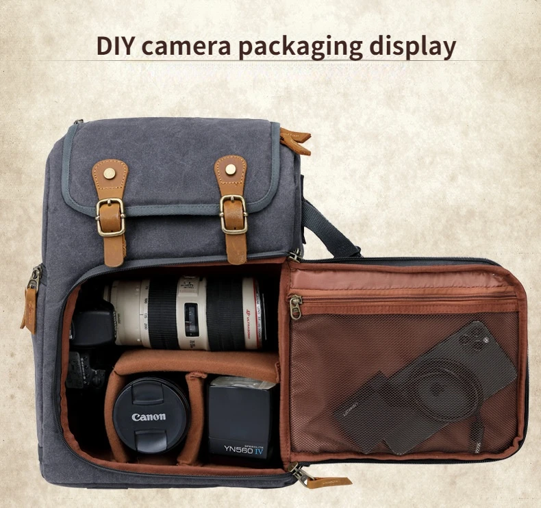Водонепроницаемая сумка для фотоаппарата, Холщовый износостойкий рюкзак для большой фотокамеры Fujifilm, Nikon, Canon, Sony
