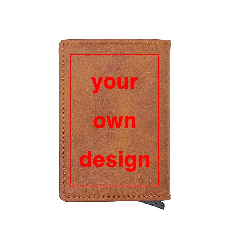 Классический кошелек для карт с Rfid-защитой для мужчин и женщин, тонкий кожаный мини-кошелек с фото под заказ, с логотипом бренда, с рисунком, сделай сам
