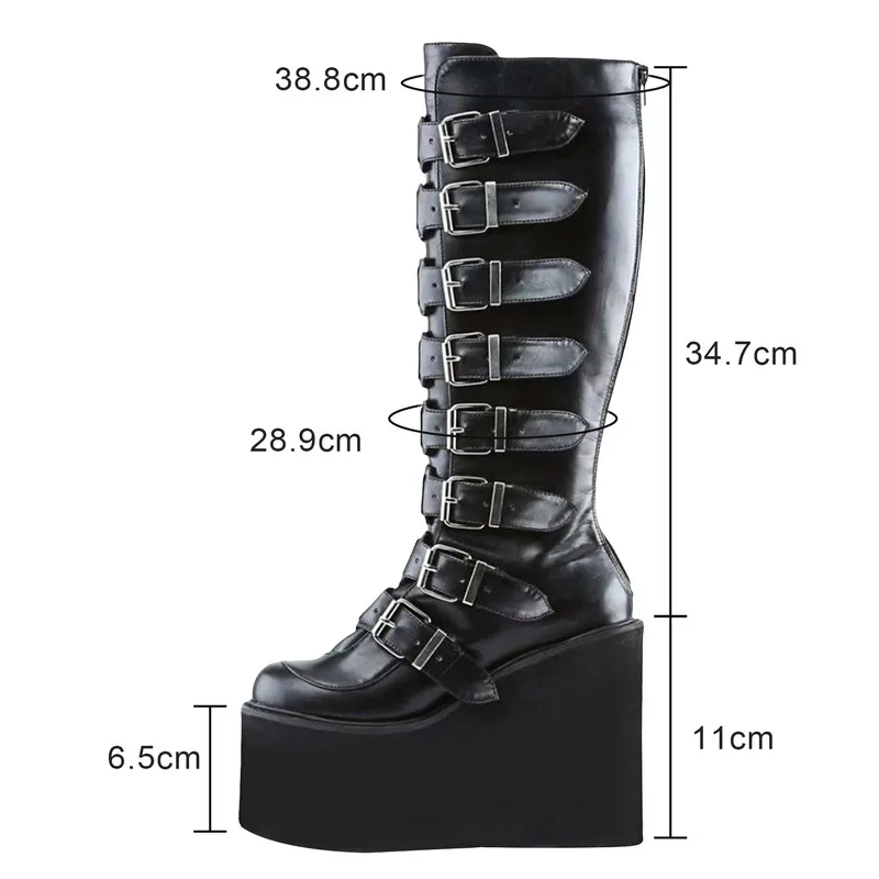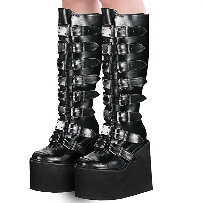 Женские ботинки до бедра, черные ботинки на платформе, готическая о...