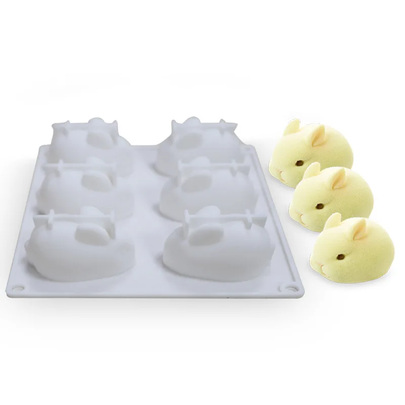 Силиконовая 3D форма с 6 отверстиями, форма для пудинга с кроликом ...