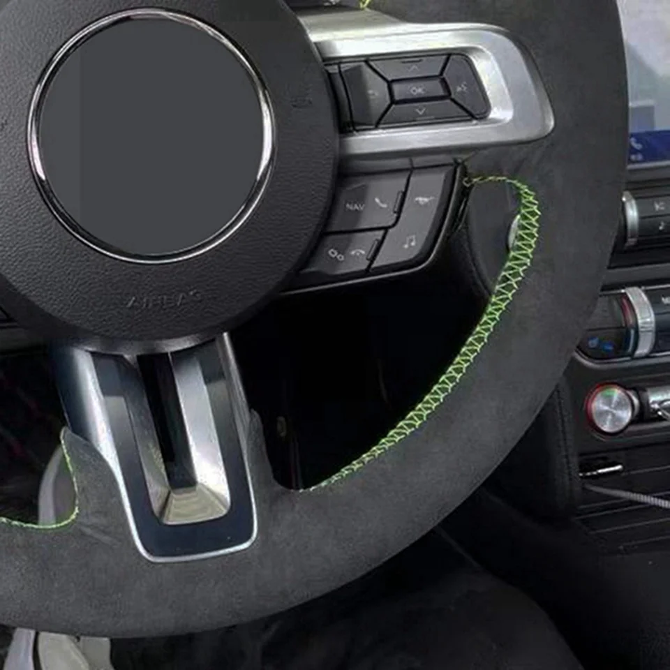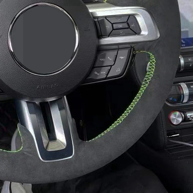 Черная замша Вручную прошитый чехол рулевого колеса автомобиля для ...