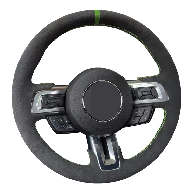 Сшитая вручную мягкая черная замша чехол рулевого колеса автомобиля...