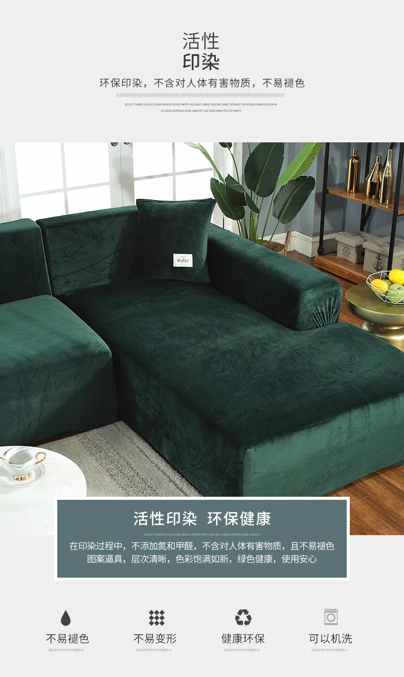 Бархатный плюшевый L-образный диван, Бархатные чехлы для гостиной, ...