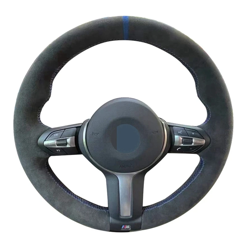 Сшитая вручную черная замша чехол рулевого колеса автомобиля для BM...