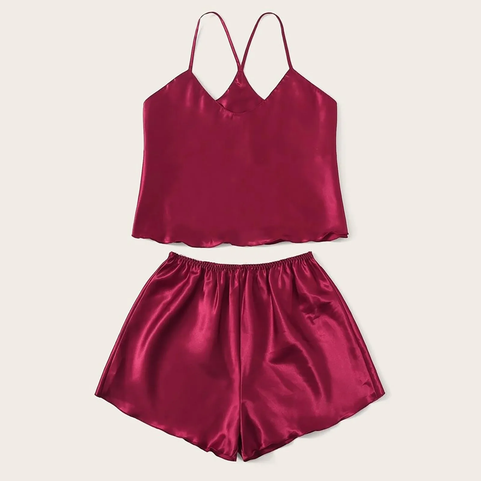 Женские пижамные комплекты, атласная шелковая одежда для сна, однотонная женская пижама из двух предметов, летняя Пижама для женщин, пикантная Пижама без рукавов для женщин