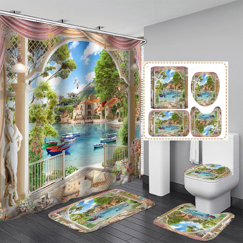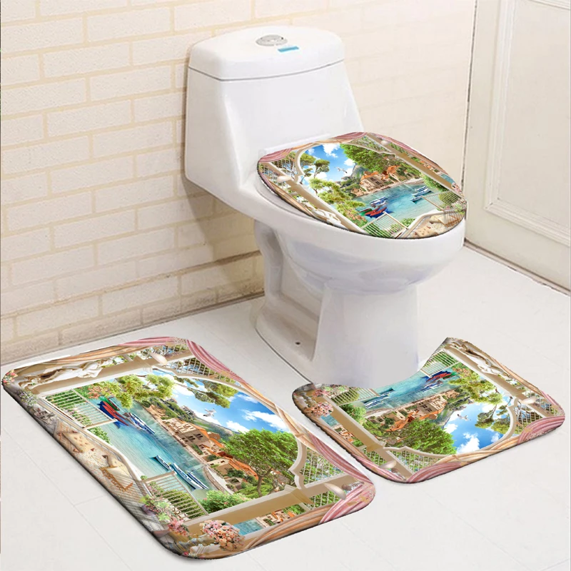 Фотообои для душа с нескользящими ковриками, крышка для унитаза и к...