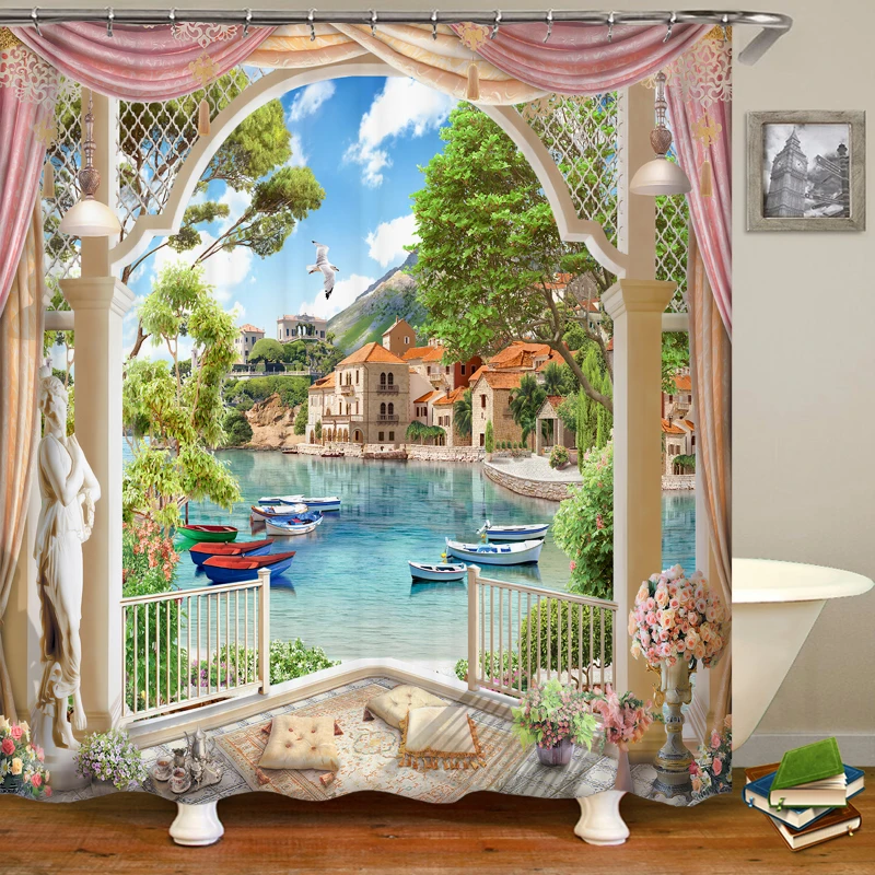 Набор водонепроницаемых занавесок для ванной комнаты с изображением...