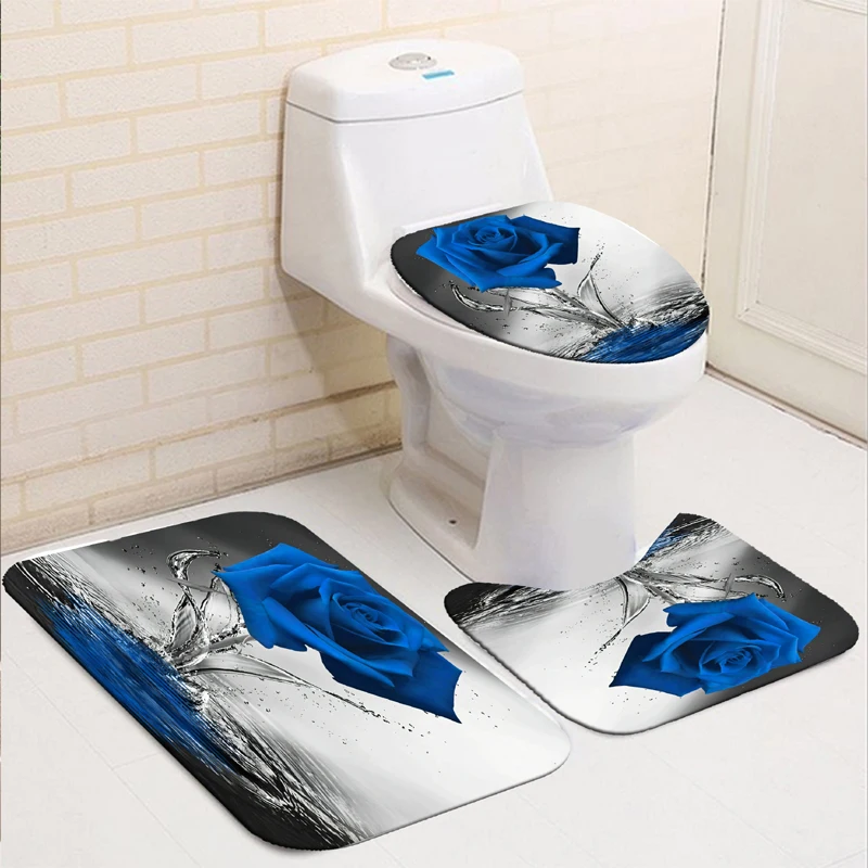 Набор водонепроницаемых занавесок для ванной комнаты с розовыми цветами, чехол для сиденья унитаза из полиэстера, нескользящий коврик для ванной, ковер, ковер, домашний декор, моющийся