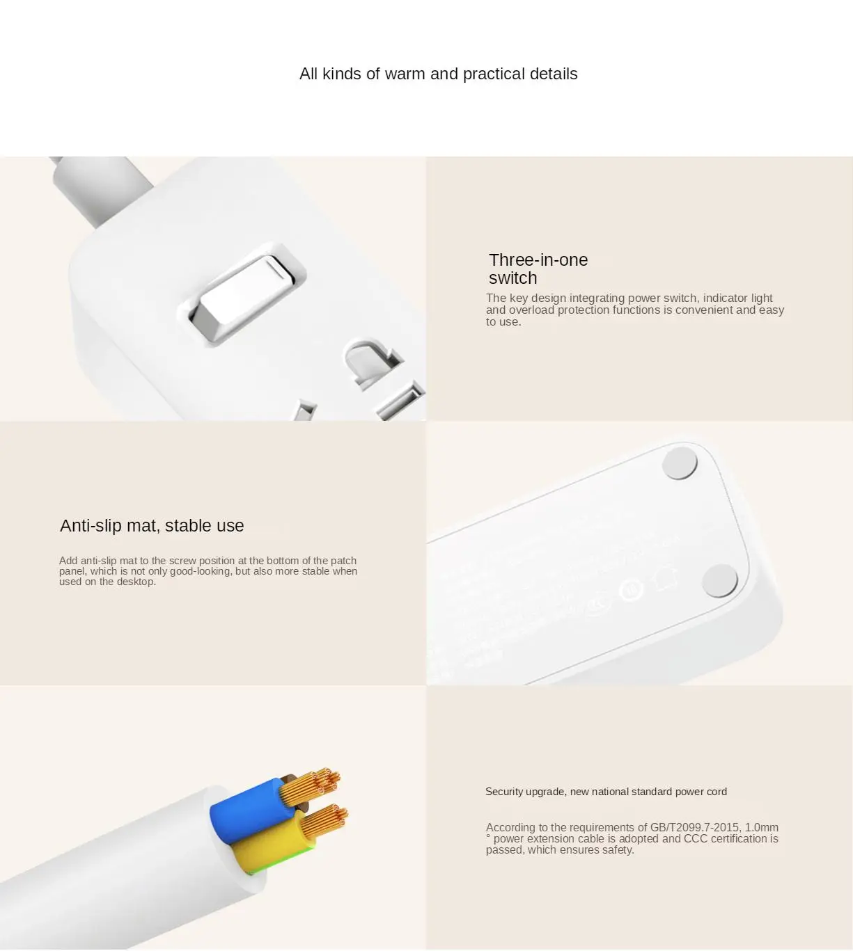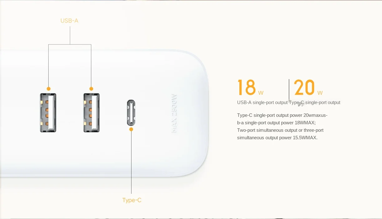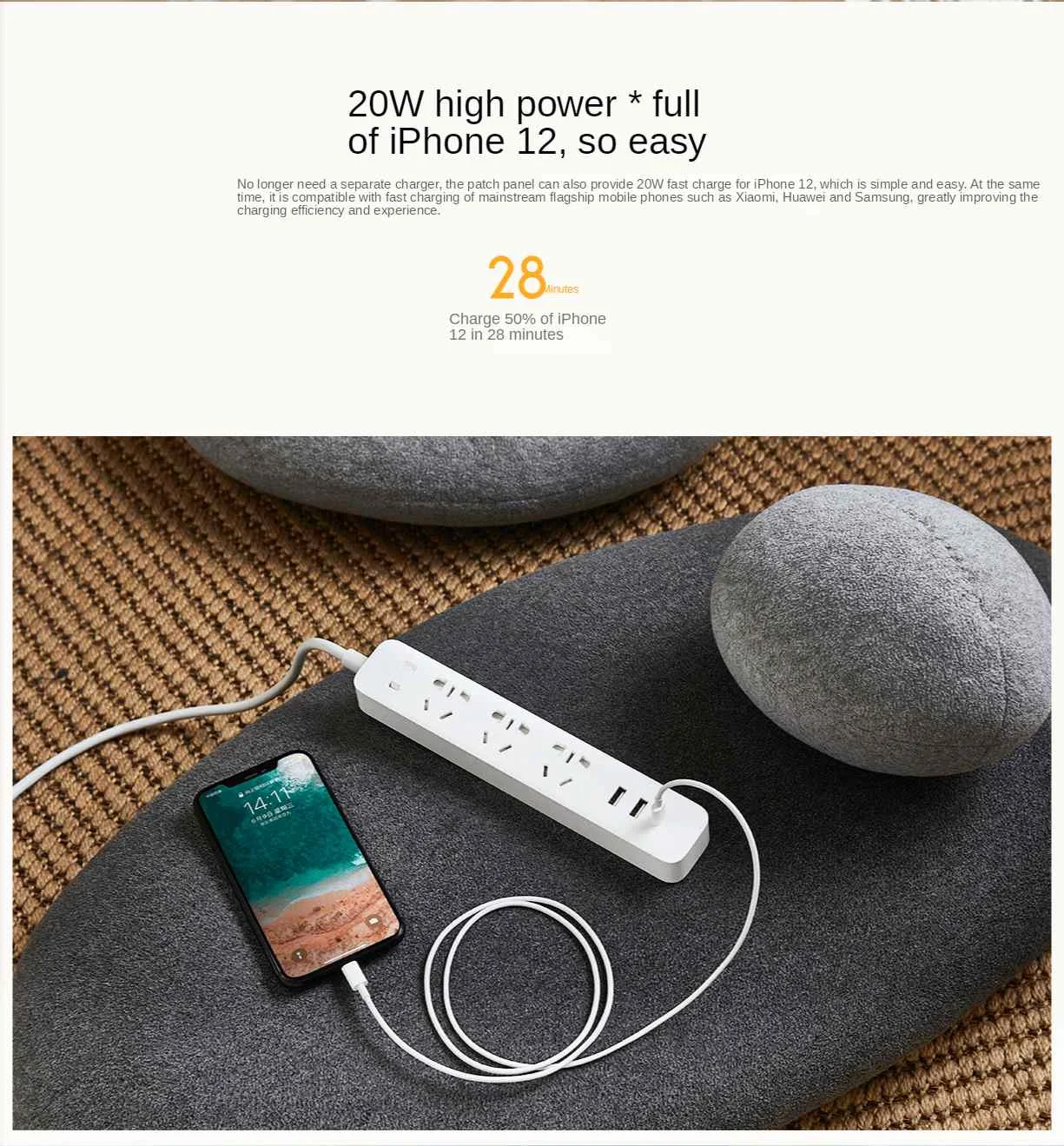 Оригинальный удлинитель питания XIAOMI 2500 Вт, 3 розетки, зарядное устройство USB, быстрая зарядка, 20 Вт, Type-C PD Power, 18 Вт, 2 порта USB, выходное зарядное устройство QC3.0