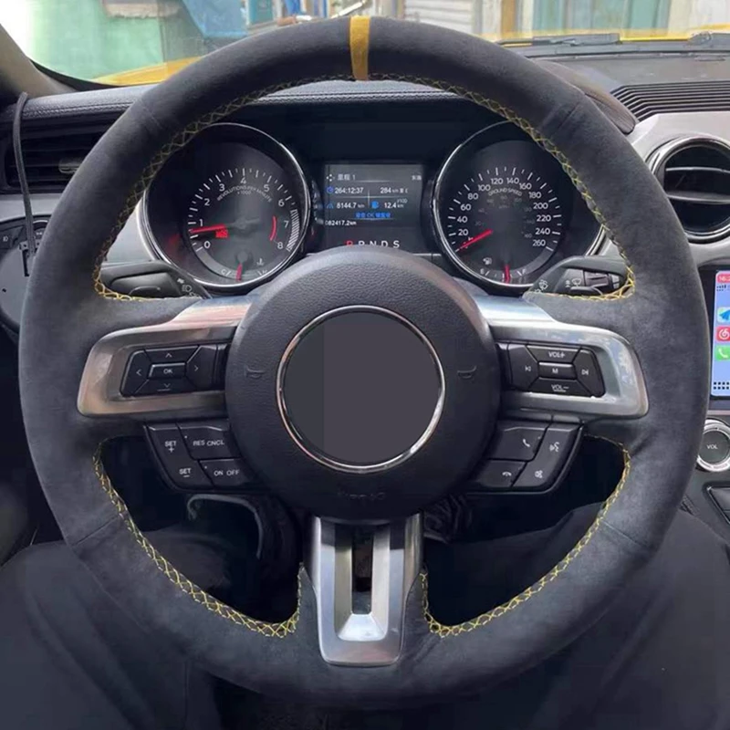 Черная замша из натуральной кожи, прошитая вручную, нескользящая модель для Ford Mustang 2015-2019 Mustang GT 2015-2019