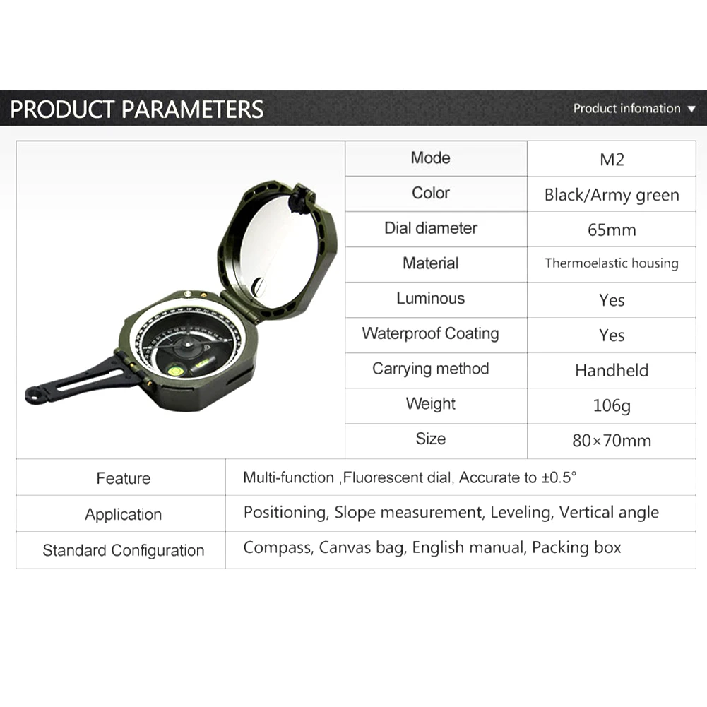 Портативный профессиональный Компас для охоты, Военный компас для кемпинга на открытом воздухе, армейский зеленый, для походов, выживания, для путешествий, точный навигационный инструмент