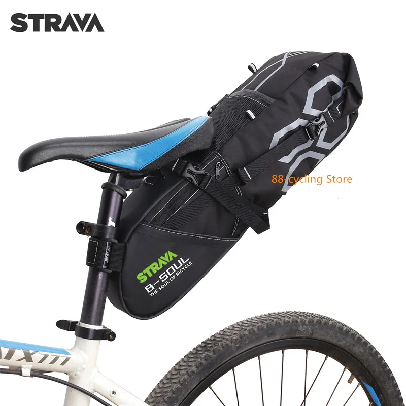 Велосипедная сумка STRAVA, водонепроницаемая Светоотражающая вместительная седельная сумка на 12 л, велосипедный складной задний багажник для горных велосипедов