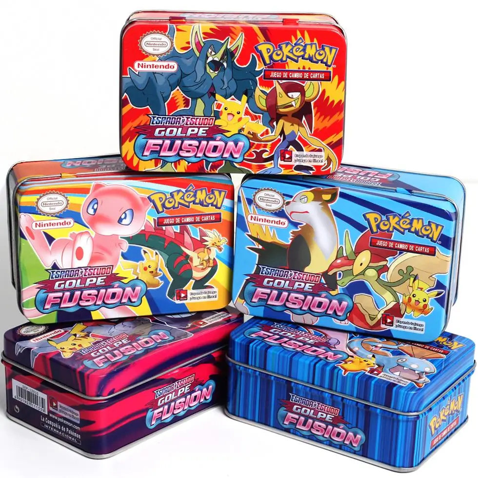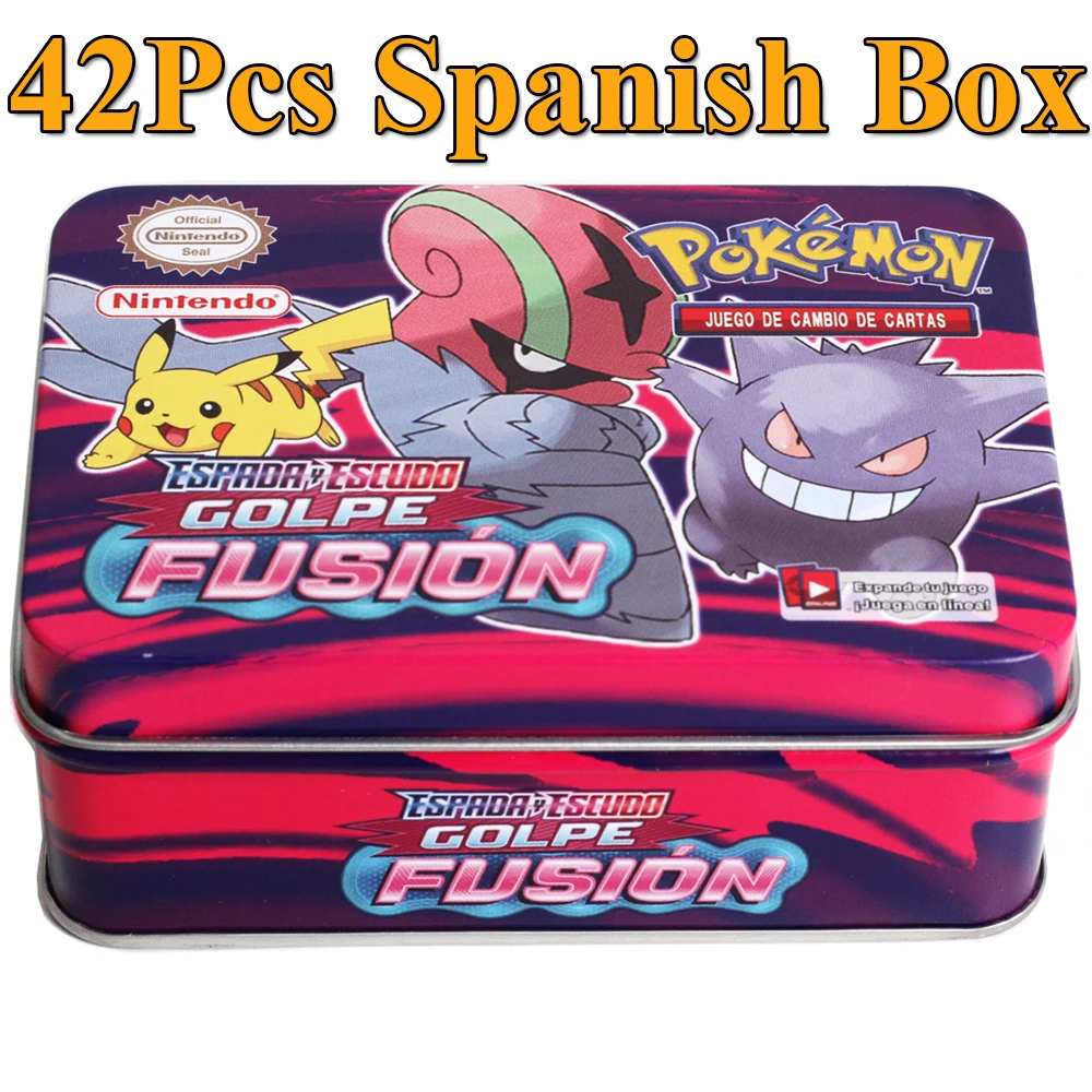Оригинальные карты Pokemon 27-54 шт., испанские металлические золотые карты, фьюжн-бокс, меч и щит энергия, редкая коллекция, боевые тренировочные игрушки