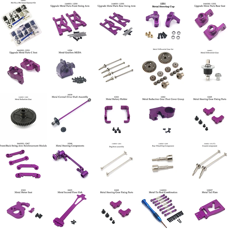 Wltoys 124018 124019 машинка на радиоуправлении 1:12 фиолетовая все обновленные металлические запасные части 4WD Тип C сиденьеЦентральный приводной вал в сбореосьподшипник