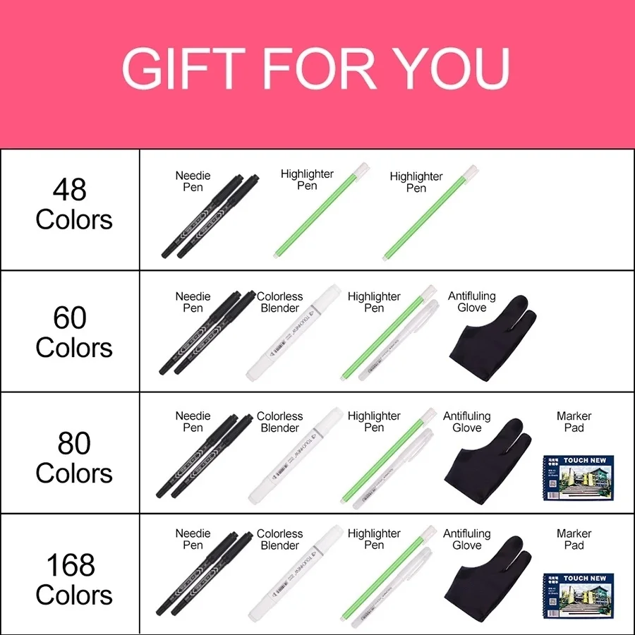 Посылка:1 комплект, 30 Вт, 40/60/80/168 цветов маркеры (Черный и белый корпус) по вашему выбору.