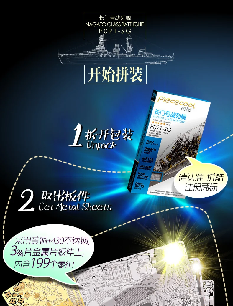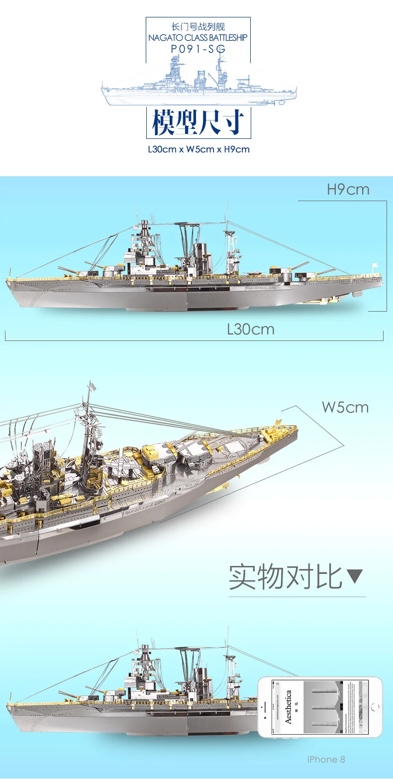 NAGATO класса броненосец P091-SG металлическая модель DIY лазерной ...
