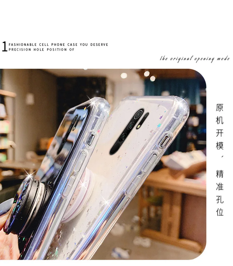 Чехол Funda для Xiaomi Redmi 9 9A 9C, блестящий чехол для Xiaomi Redmi Note 11 9 8 10 Pro 10S 9S 9T Poco X3 NFC Pro F3, чехол с подставкой в форме сердца