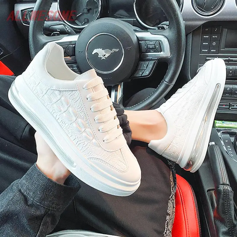 Мужская повседневная обувь, kроссовки мужские, mужские кожаные кроссовки на шнуровке, черные или белые однотонные кроссовки на воздушной подушке, весна 2022