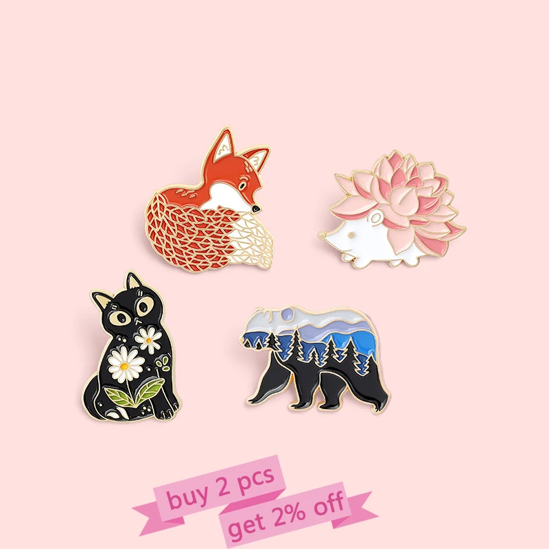 Эмалированная булавка в виде леса, сада, лисы, кошки