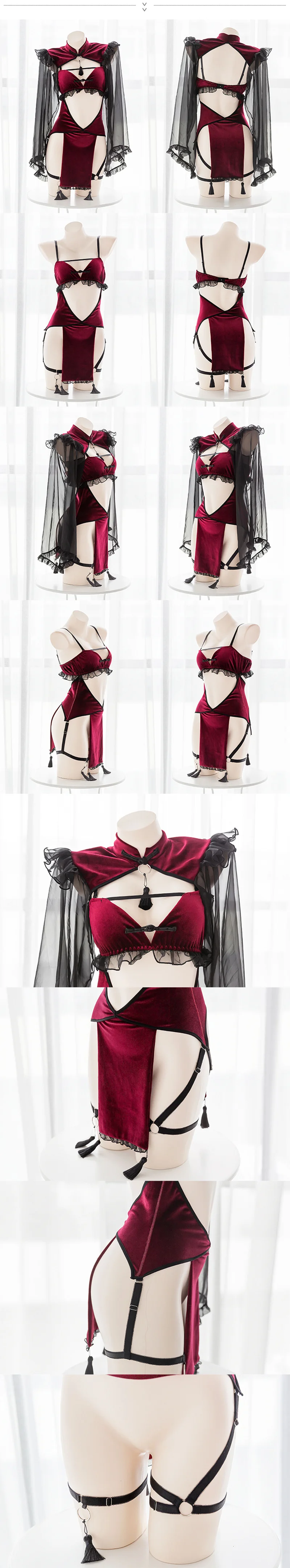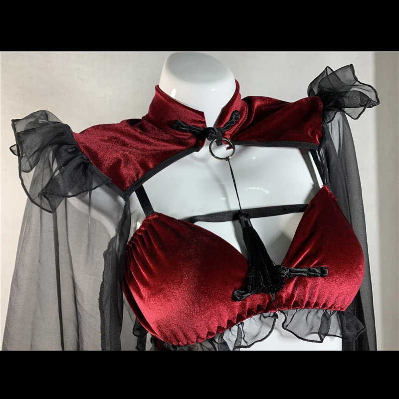 Соблазнительное готическое черно-красное кружевное сексуальное женское белье в стиле панк, соблазнительное платье горничной с открытой промежностью и злого демона, косплей, платье с открытой спиной, костюмы