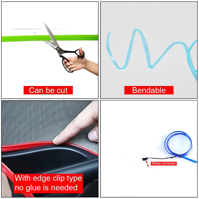 Светодиодная неоновая лента EL Wire, неоновая светодиодная лента для внутреннего освещения автомобиля, световые полосы, декоративная лампа для автомобиля, Светодиодная лента, электропровод, веревка