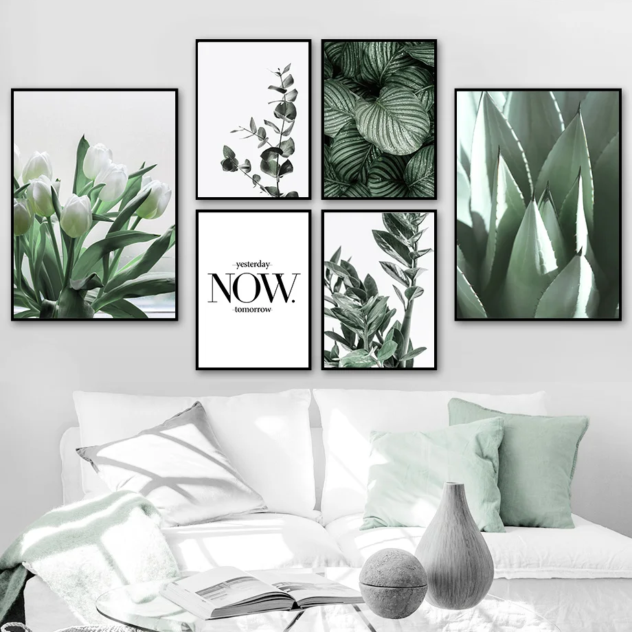 Настенная картина тюльпан с зелеными растениями, настенные картины на холсте Agave Monstera, скандинавские постеры и принты для украшения гостиной