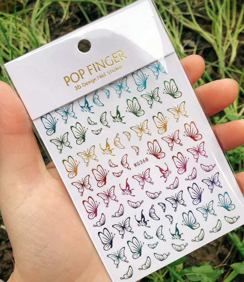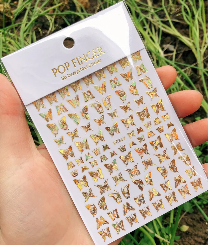 Наклейки для дизайна ногтей с бабочками, Слайдеры для ногтей, клейкие слайдеры, Красочные золотые переводные наклейки для ногтей сделай сам, фольга, обертывания, украшения