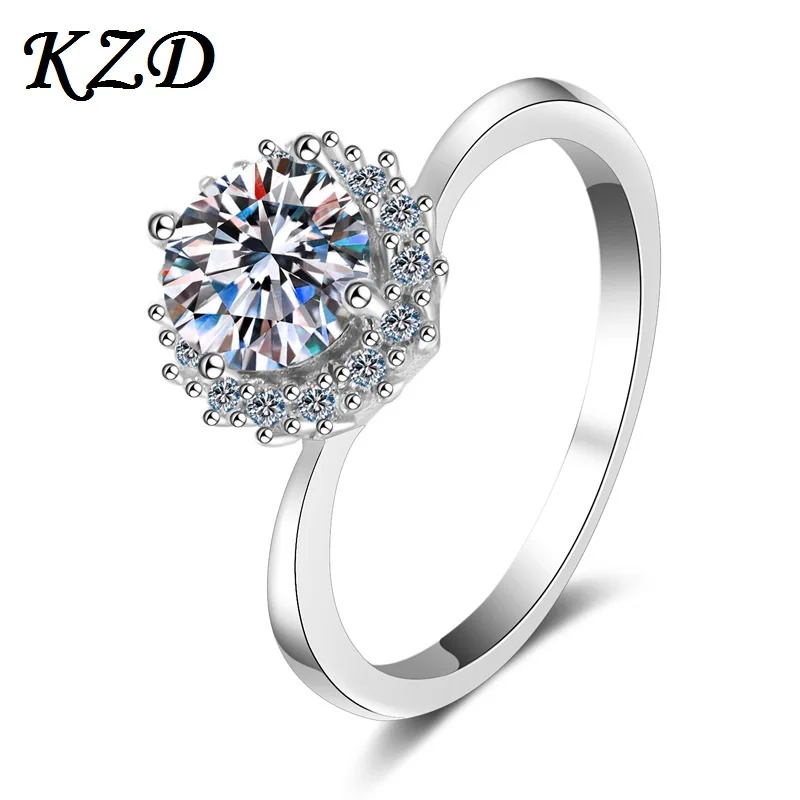 Женское кольцо из стерлингового серебра S925, 1 карат, бриллиант Муассан, четыре когтя, кольцо с солнечным цветком, подарок на день рождения, годовщину и сюрприз