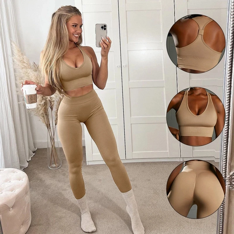 Бесшовный спортивный комплект для женщин, топ для йоги, спортивный бюстгальтер, леггинсы для тренажерного зала, спортивная одежда для фитнеса, тренировок, спортивная одежда для бега, тренажерного зала, женские комплекты для йоги