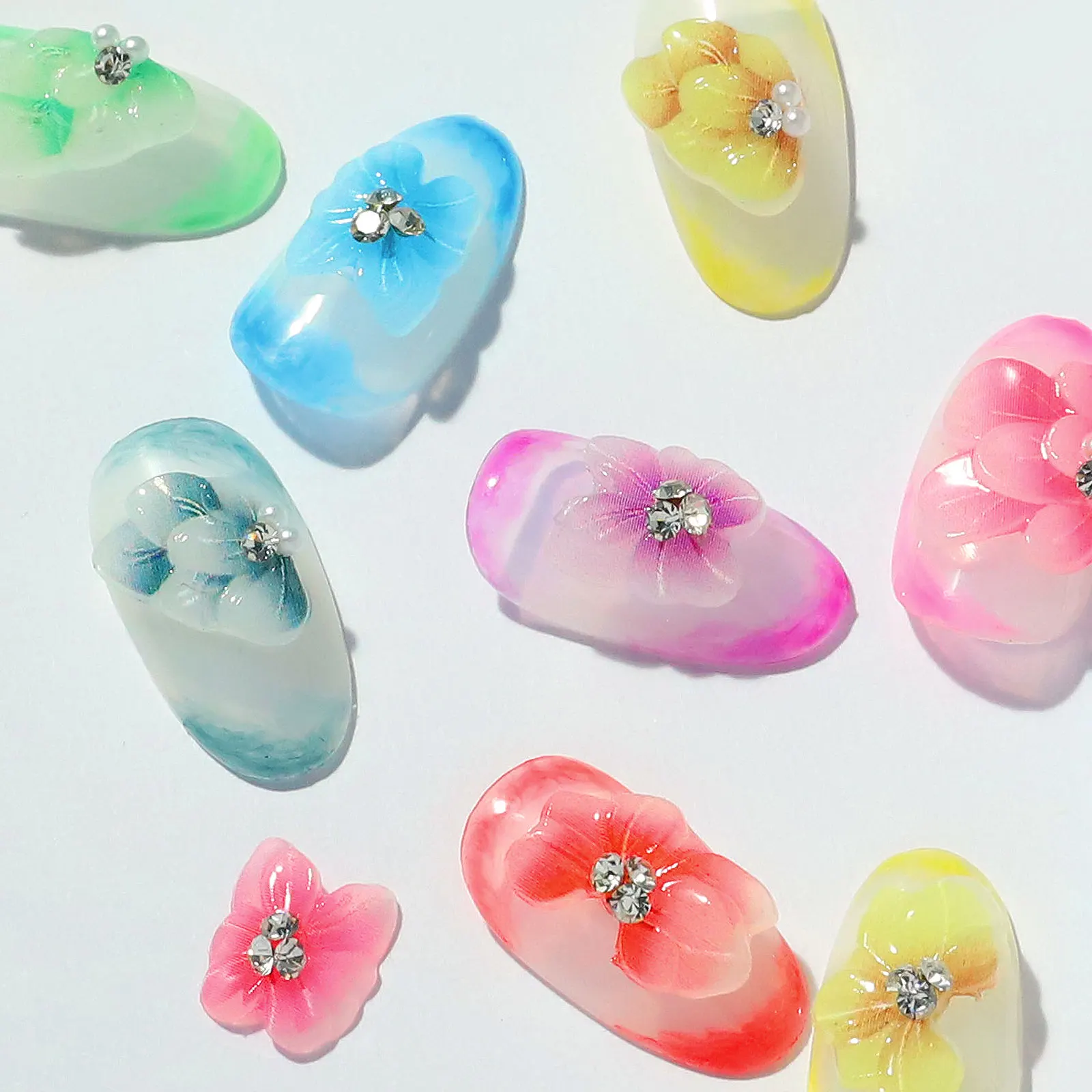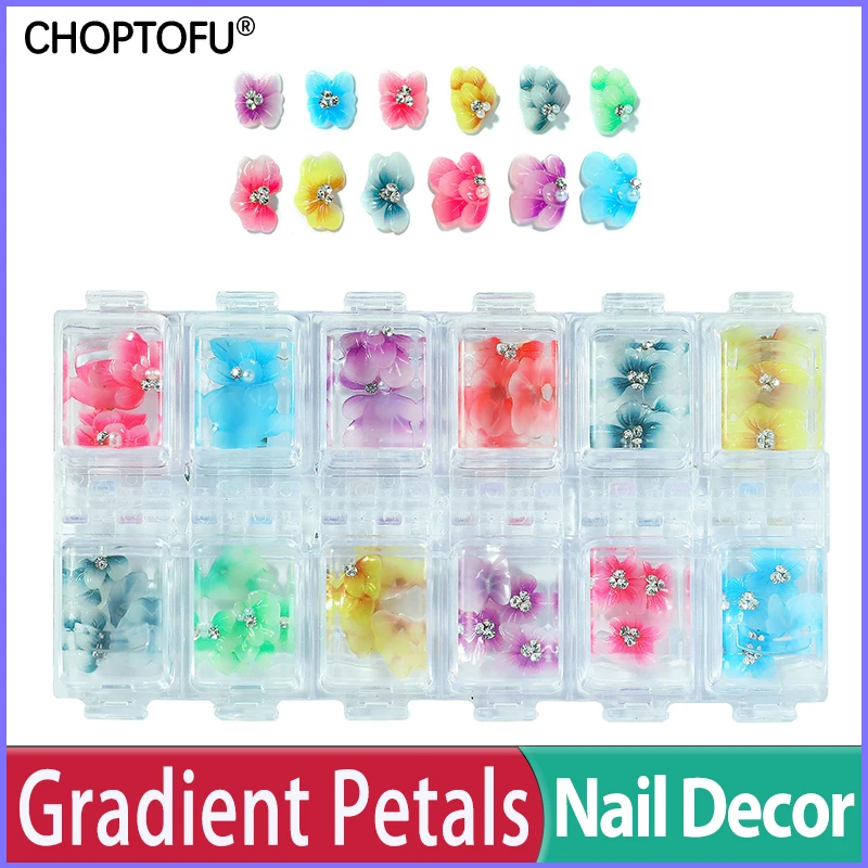 2448144 шт.кор. 3D бабочка Рельефный цветок дизайн ногтей украшение градиентные лепестки накладные ногти Стразы Украшенные бриллиантами ногти