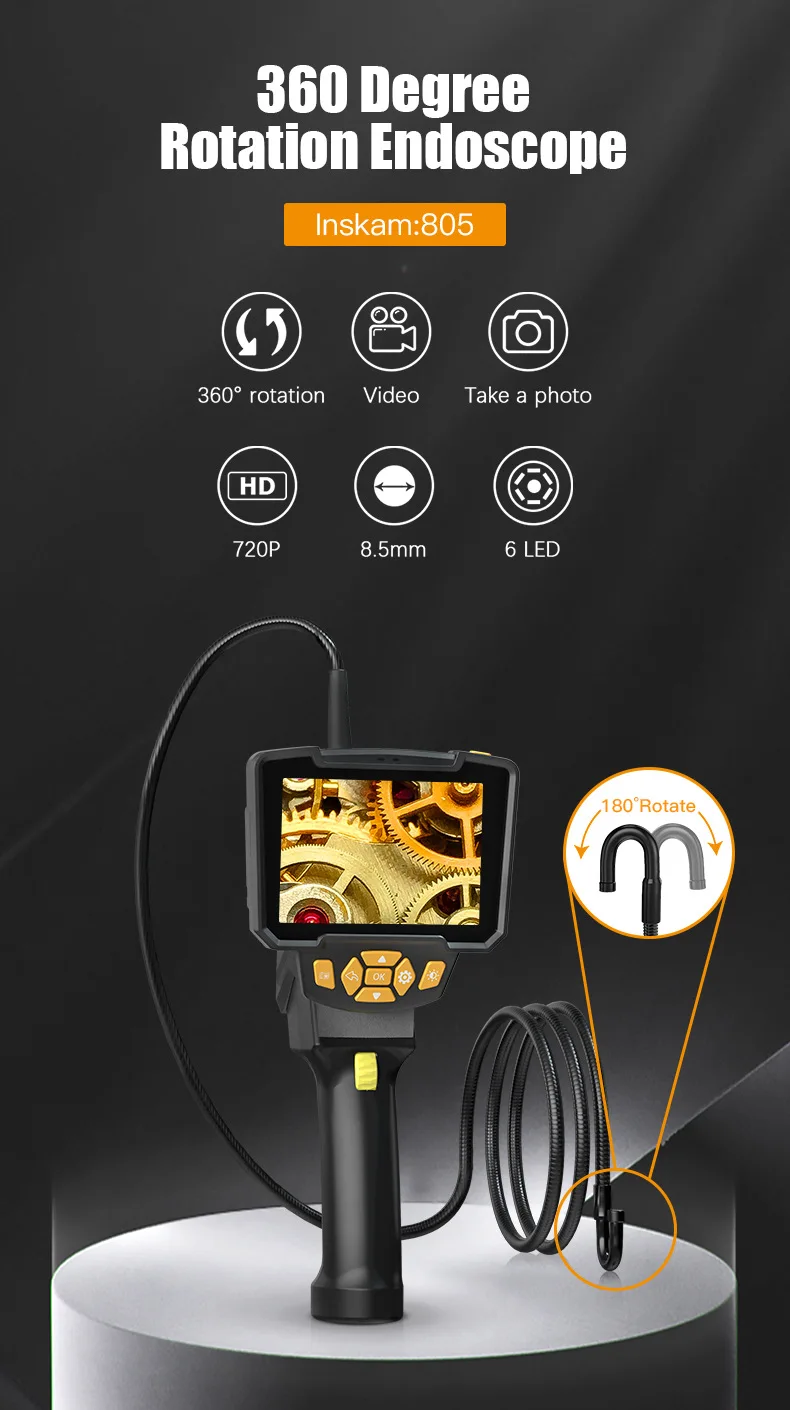 Эндоскоп с поворотом на 180360 градусов и ЖК-экраном, 8 мм