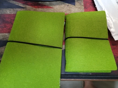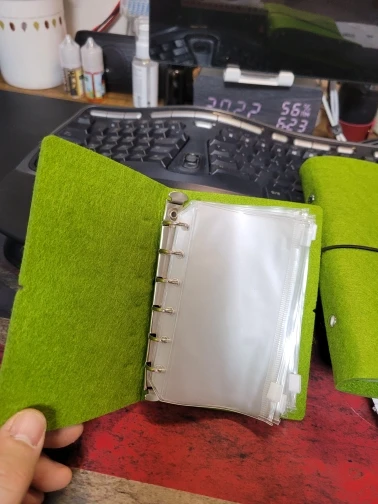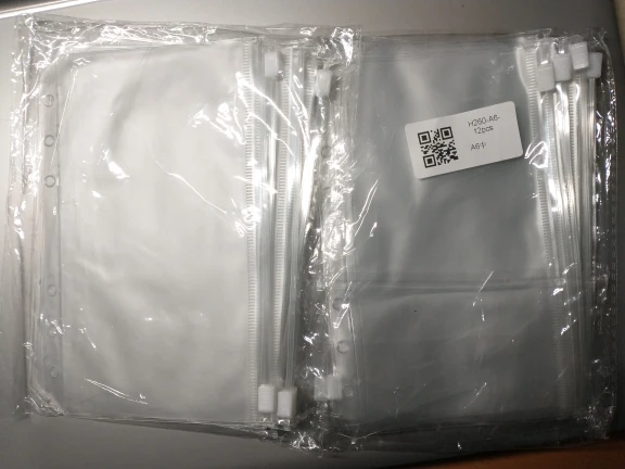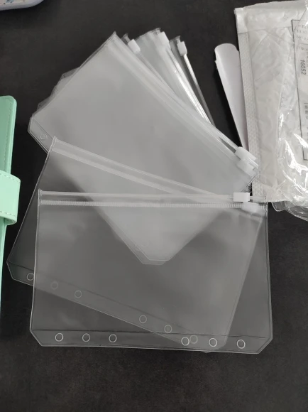 Толстый материал, сумки помещаются в А6 органайзер для связывания колец, очень чистая обработка и до сих пор удерживает молнию также