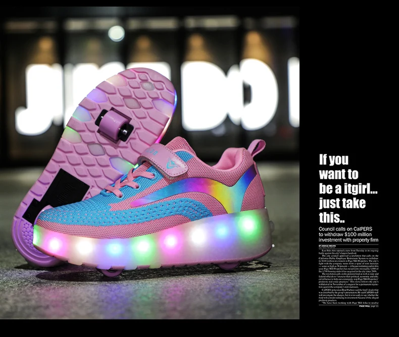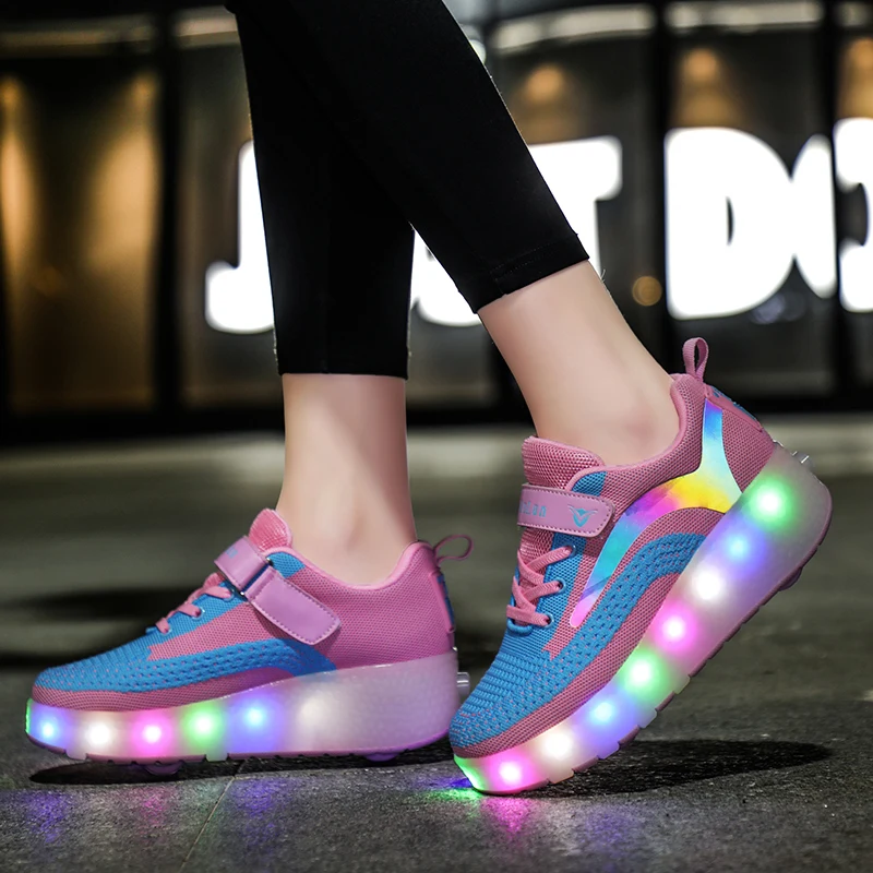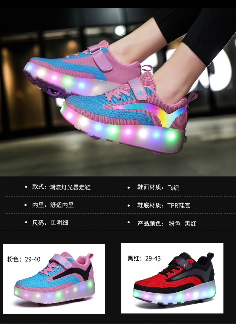 Детские светящиеся кроссовки с двумя колесиками, легкая обувь для р...