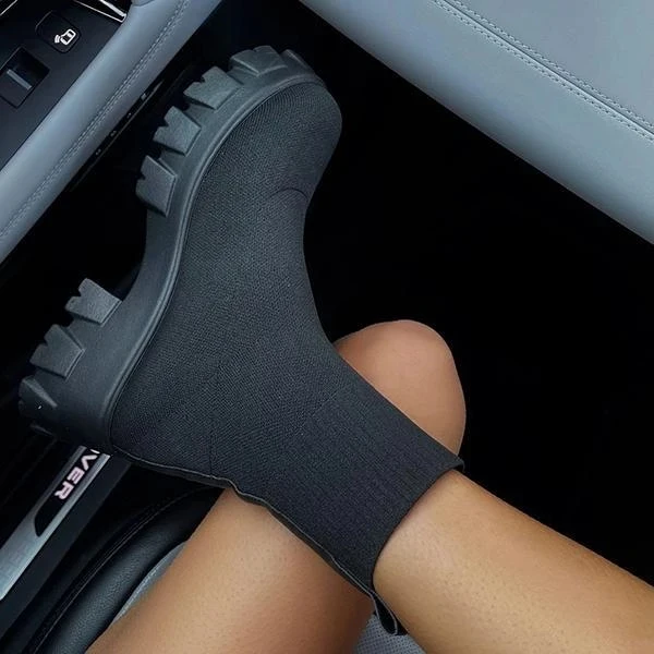 Женские ботильоны на толстой подошве, трикотажные женские ботинки-н...