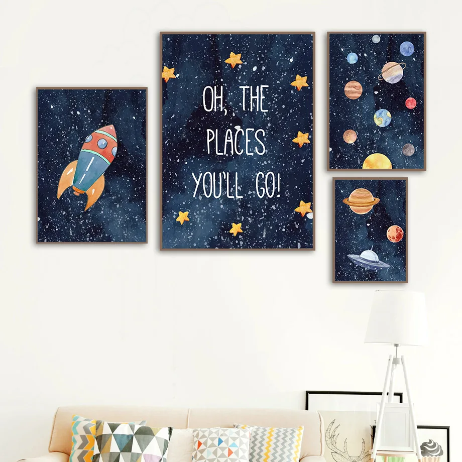 Настенная картина космическая планета дневная звезда детская живопись на холсте скандинавский плакат и принты настенные картины декор детской комнаты