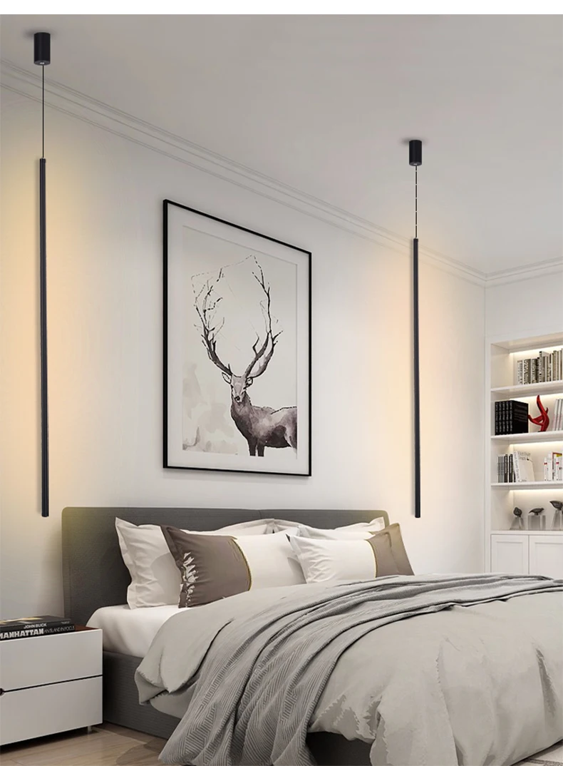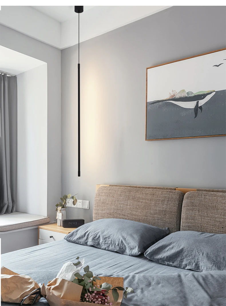 Черные длинные висячие лампы для потолка светодиодный Подвеска у кровати светильники спальни гостиной скандинавскийСовременное освещение из алюминия