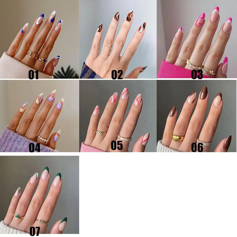 Съемные миндальные круглые волнистые накладные ногти со съемными ис...