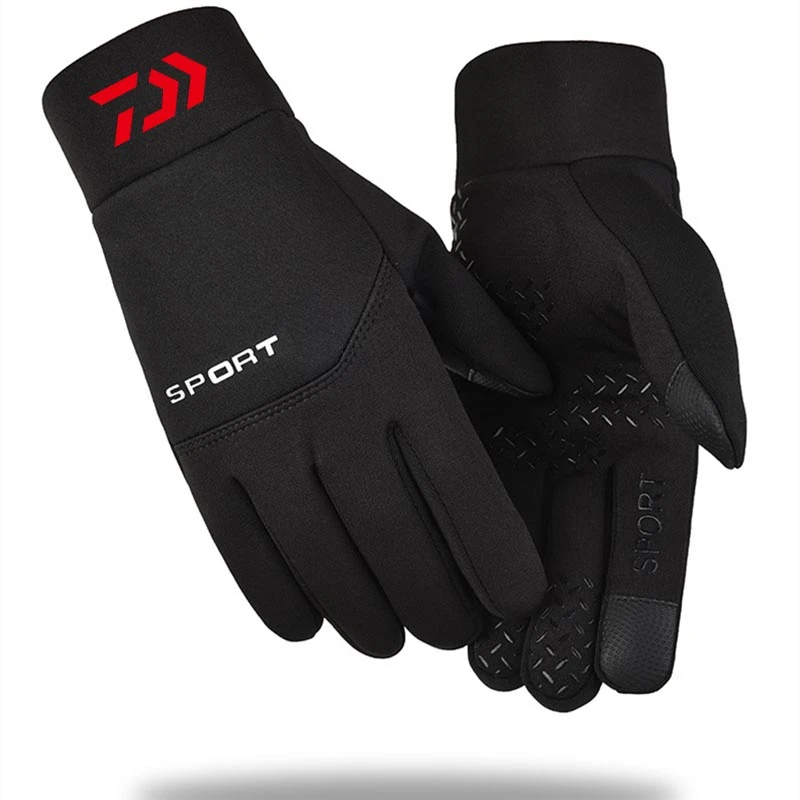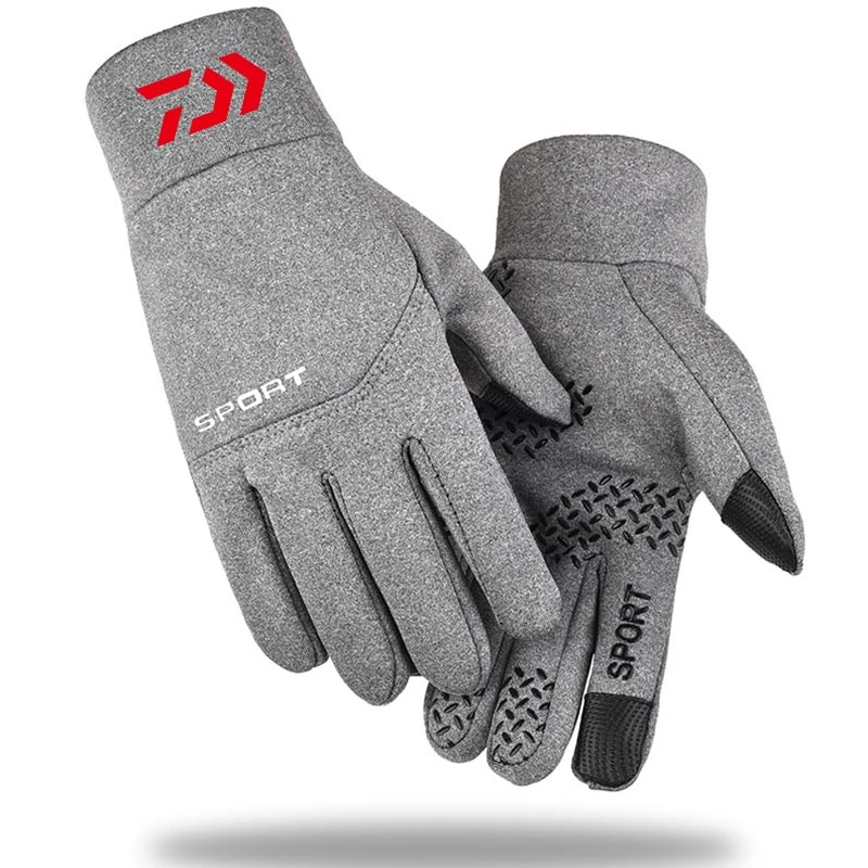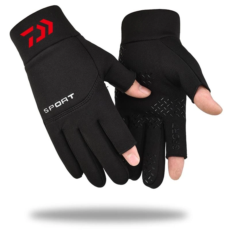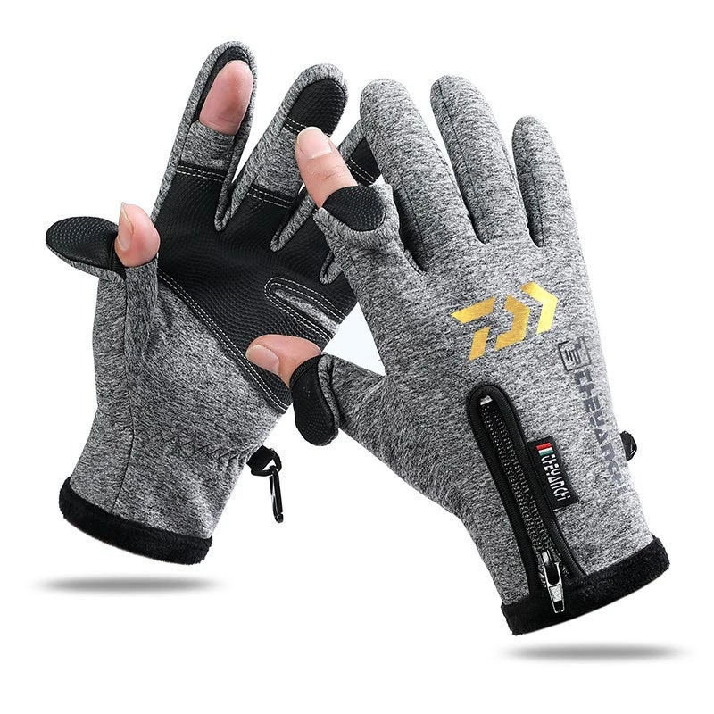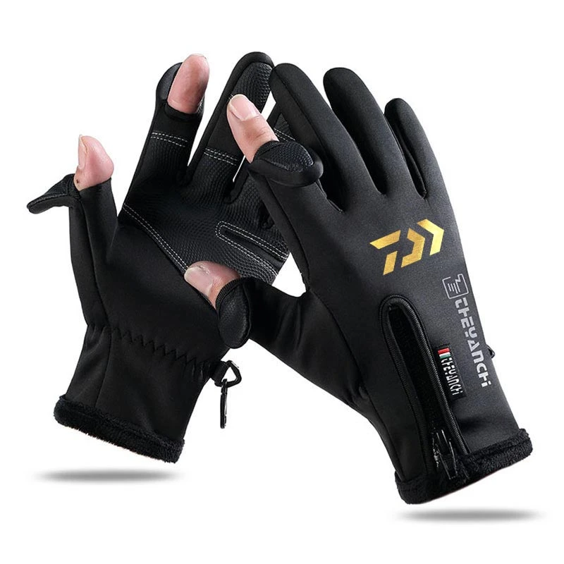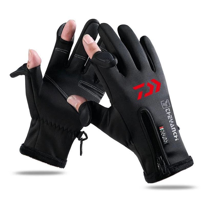 Уличные рыболовные перчатки, теплые мужские Зимние флисовые толстые Нескользящие велосипедные водонепроницаемые перчатки с двумя пальцами для сенсорных экранов