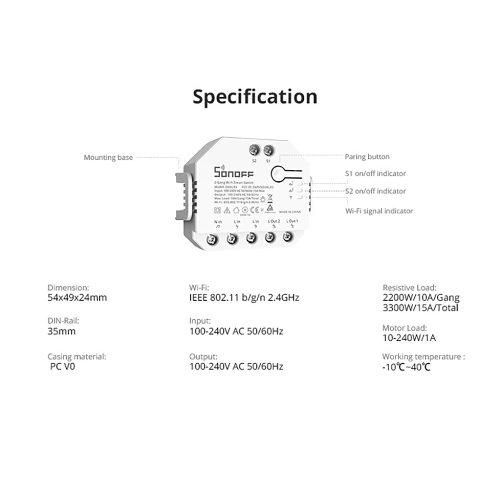 SONOFF DUALR3 выводит ваш дом на следующий уровень. DUALR3-это встроенный модуль беспроводного двойного реле Wi-Fi, который устанавливается за любым стандартным переключателем для передачи его в умный переключатель для беспроводного дистанционного управления с помощью мобильных устройств или голосовой команды. Объединяя ваши бытовые приборы в интегрированную беспроводную сеть, чтобы они общались друг с другом, что удобно для вас управлять и контролировать, включая свет, бытовую технику и моторизованный
