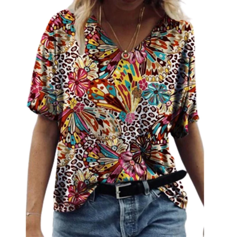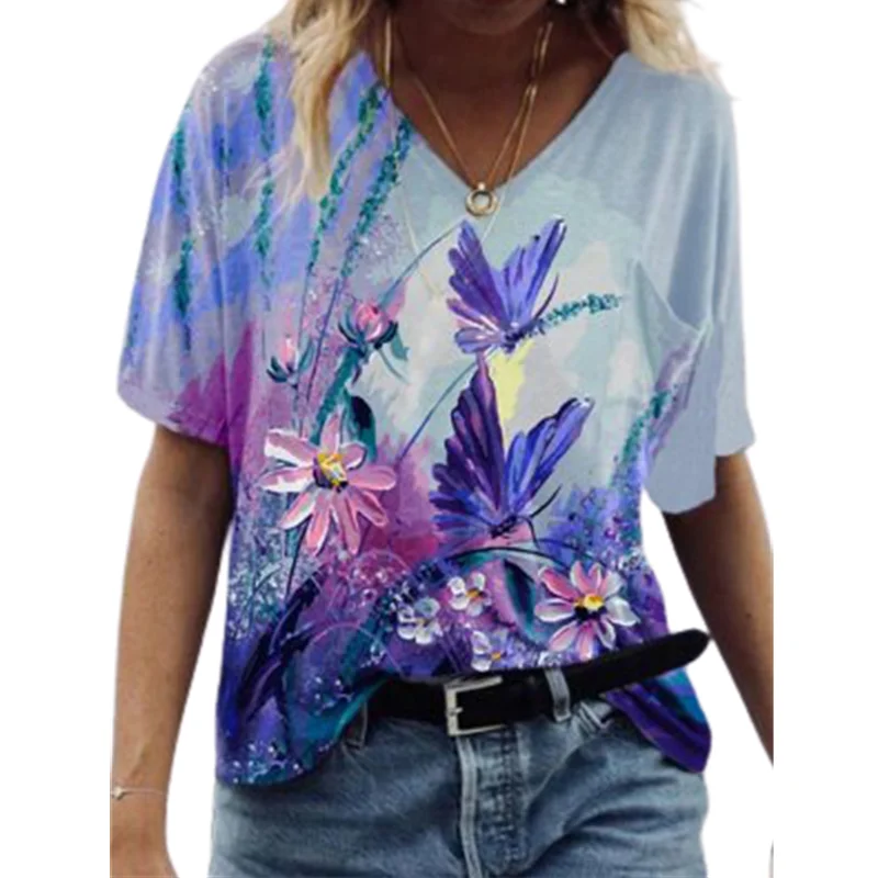 Женская свободная туника с цветочным принтом, Повседневная футболка...