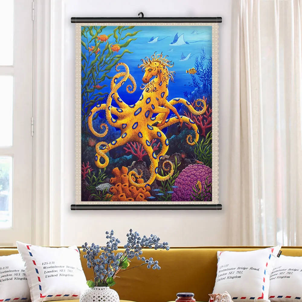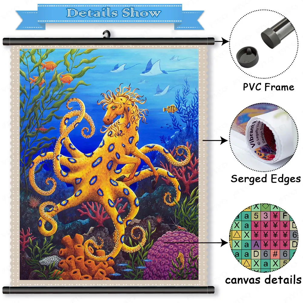 Алмазная живопись 5D "сделай сам", абстрактная лошадь, осьминог, полная Алмазная мозаика, вышивка с рамкой, наборы для вышивки крестиком, домашний декор, рукоделие