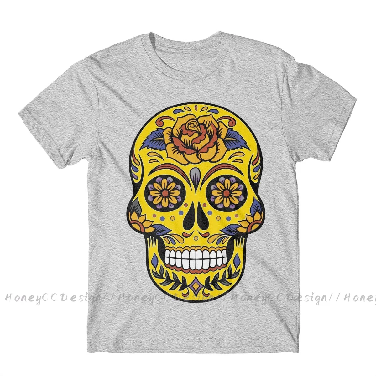 Мексиканский череп сахар Новое поступление Футболка день мертвых череп рубашка с круглым вырезом хлопковая Мужская футболка для взрослых