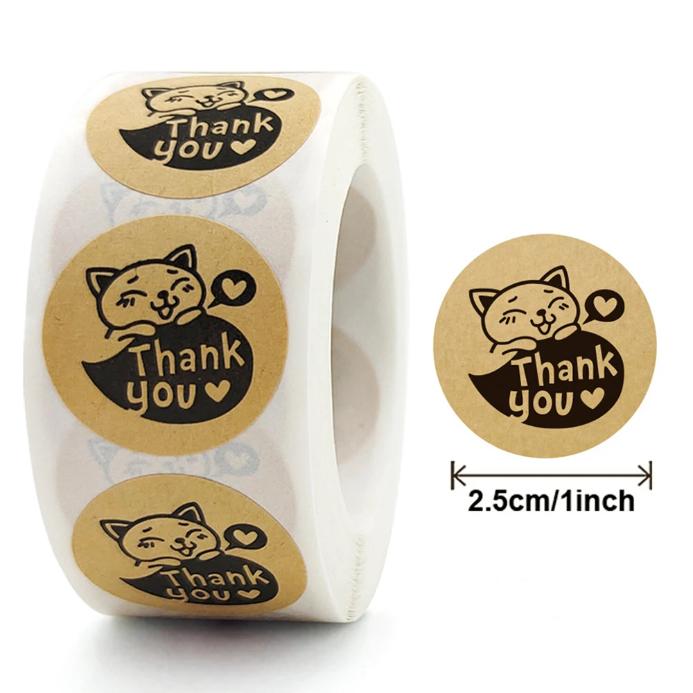 500 шт.рулон 1 дюйм Милая этикетка с котиком Спасибо наклейки подхо...