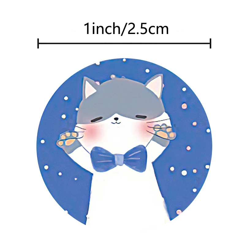 Наклейки круглые с изображением кота, 500 шт., этикетки для печати