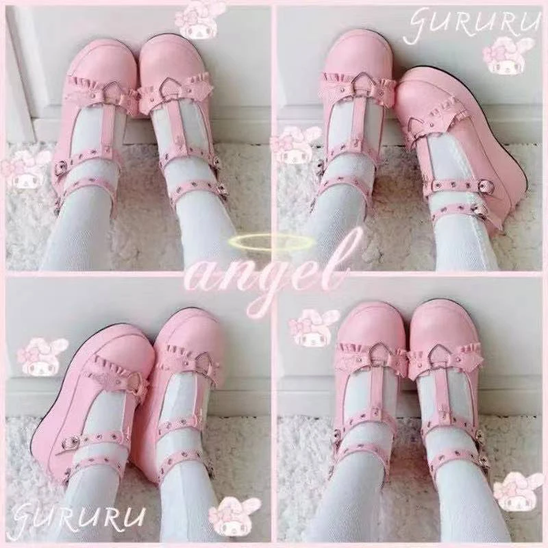 Туфли Lolita Kawaii обувь на платформе Loli девриана летучая мышь б...