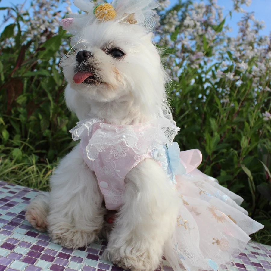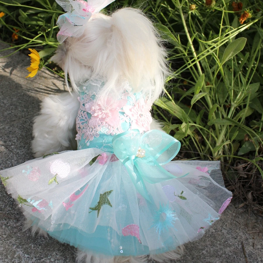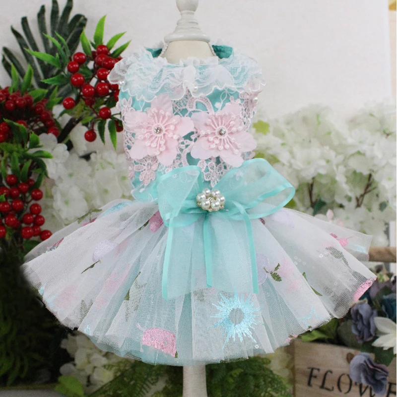 2022 одежда для домашних животных ручной работы для собак розовые синие цветочные жемчужные банты кружевные платья принцессы для маленьких средних собак Свадебная Юбка комбинезон для щенков