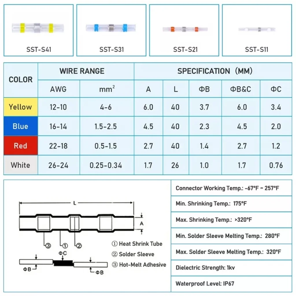 Термоусадочные клеммы с зажимом для пайки, электрические зажимные втулки, водонепроницаемые зажимы для проводов, клеммы для проводов, 51020 шт.